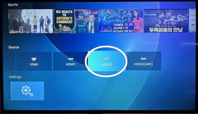 Nachdem Sie den Fernseher eingeschaltet haben, gehen Sie nach unten und wählen Sie HDMI2